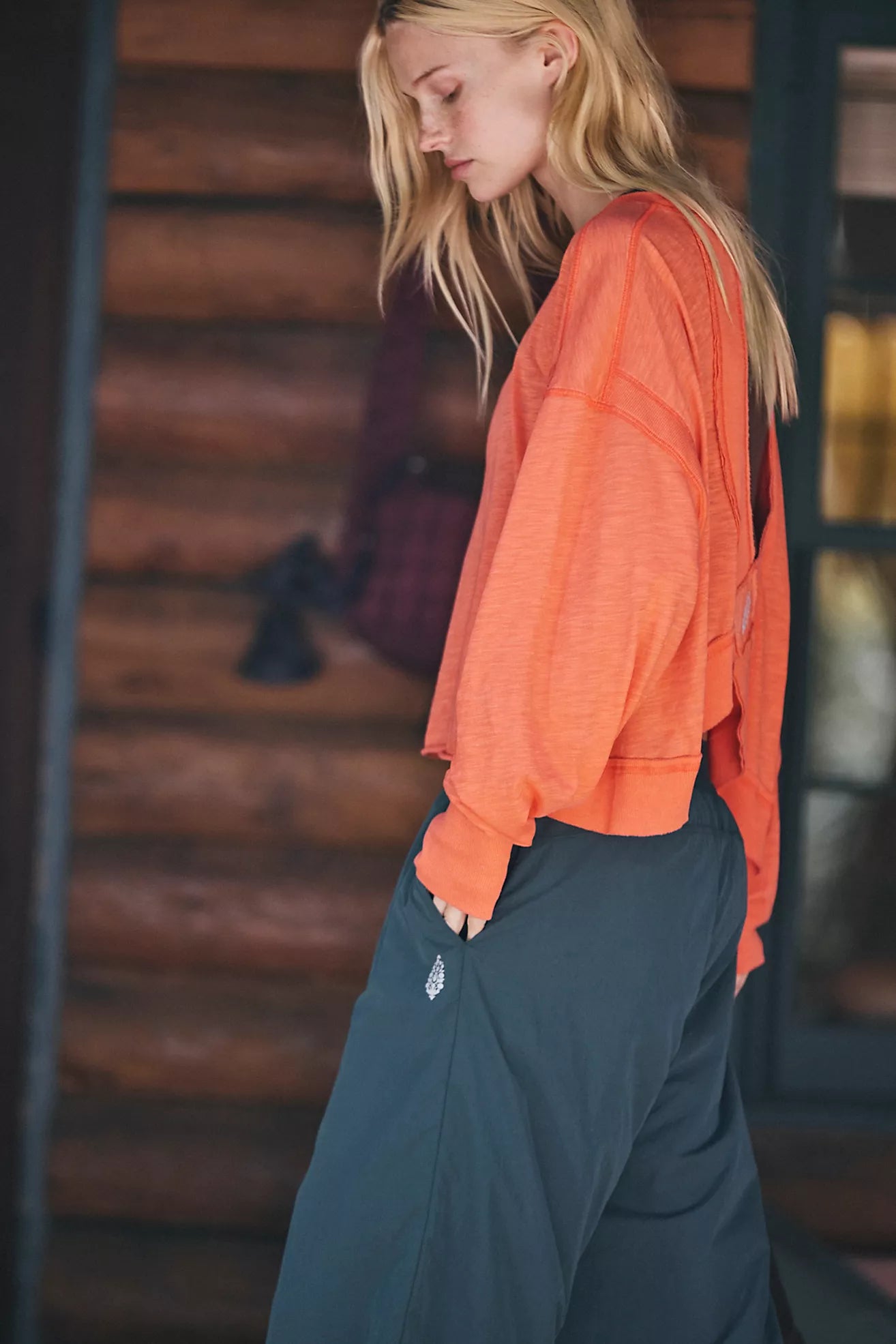 Perfect for going to or from a workout, this layer features a soft fabrication, slouchy crop and flattering back opening.