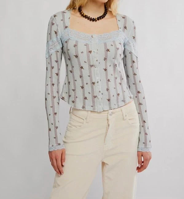 This ribbed knit beauty features delicate lace trim and a dainty button-front detail that gives all the soft, feminine vibes. Layer it up now, wear it solo later — either way, it’s that effortlessly cozy piece your closet’s been waiting for