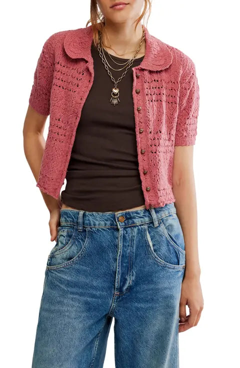 Pretty openwork patterning gives this cool and ultracute cardigan the look of a vintage-store score.